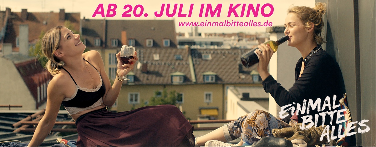 EINMAL BITTE ALLES wurde nicht nur in München produziert und gedreht, sondern erzählt auch eine Münchner Sommergeschichte. Helena Hufnagel tritt mit ihrem Kinofilm-Debüt den Beweis an, dass Indie-Kino auch in Deutschland funktionieren kann und dabei sogar noch unterhaltsam sein darf. Der offizielle Trailer (HD) ist ab sofort auf YouTube und Vimeo online: