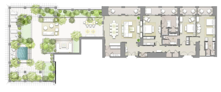 Penthouse Suite The 11th floor three-bedroom, 2,668 sq. ft. Penthouse Suite is the
