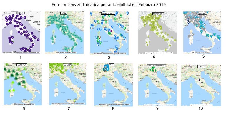 Mappe colonnine di ricarica Le colonnine ricarica si stanno ormai diffondendo a macchia d’olio in tutta Italia, al punto che è diventato perfino difficile tenere il conto di quanti operatori e di quante colonnine sono. Ecco lo stato delle mappe di vari fornitori a febbraio 2019: Se si possa ricaricare o no l’auto da una colonnina il cui operatore è diverso da quello di cui si possiede la tessera magnetica, dipende da una cosa che si chiama “roaming” o “interoperabilità“, ma purtroppo al momento non esiste un sito ufficiale che elenchi i rapporti di interoperabilità esistenti tra i vari operatori, quindi per ora bisogna affidarsi alla buona volontà di qualche “pioniere elettrico”: