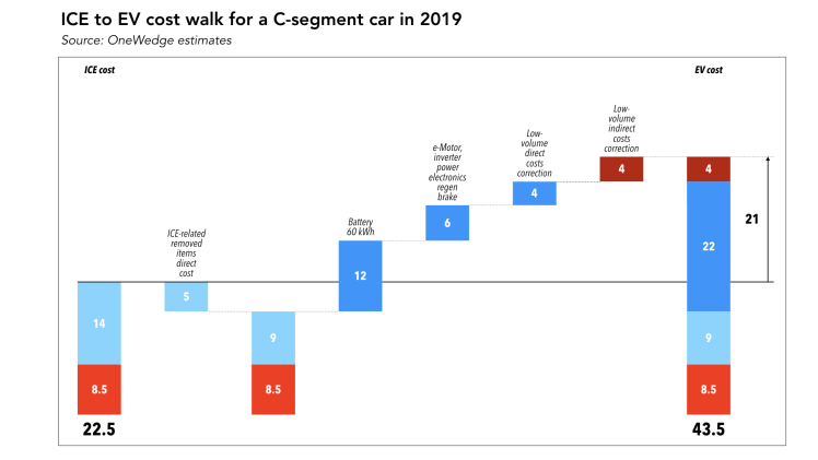 Rendere profittevole la produzione di EV Oggi ho letto un articolo sul blog automotive di McKinsey che mi ha fatto inarcare le sopracciglia: in estrema sintesi, dice che costruire una EV è molto più costoso che costruire una ICE della stessa categoria. In effetti concordo sulla conclusione, ma ho qualche riserva sulla ripartizione dei costi (che in McK chiamano “cost walk”) riportata nell’articolo: