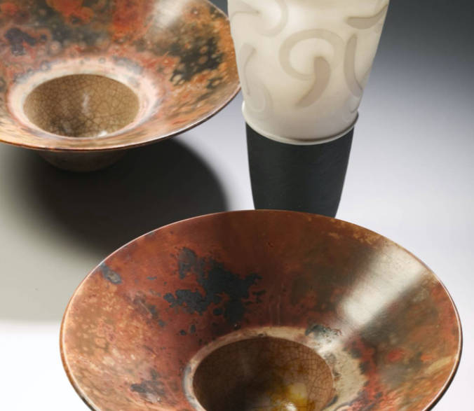 | | | COLOURED AND LAMINATED CLAYS a 3 day workshop with Steve Mattison22 - 24 November, 2023 You will learn a variety of surface techniques using coloured clay, slips and stains to make intricate and expressive surfaces evocative of landscape and natural patterns. Hand-building techniques, including using moulds and formers, will be demonstrating how to create sculptural forms or functional objects enhanced by the rich textural surface decoration. | |