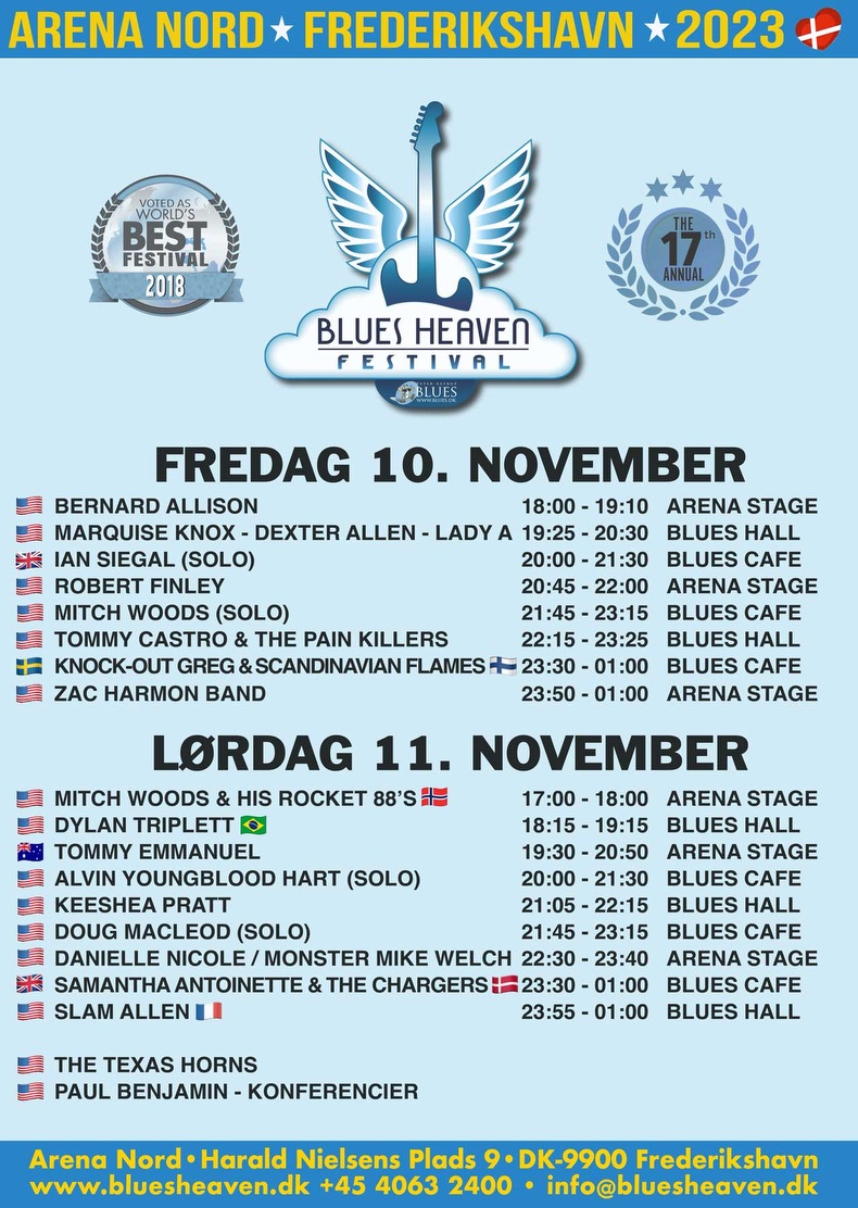 | |  | Hi In this newsletter, you find info on: • Running order at Blues Heaven • Official playlist 2023 released • Extra concerts in Frederikshavn |  |