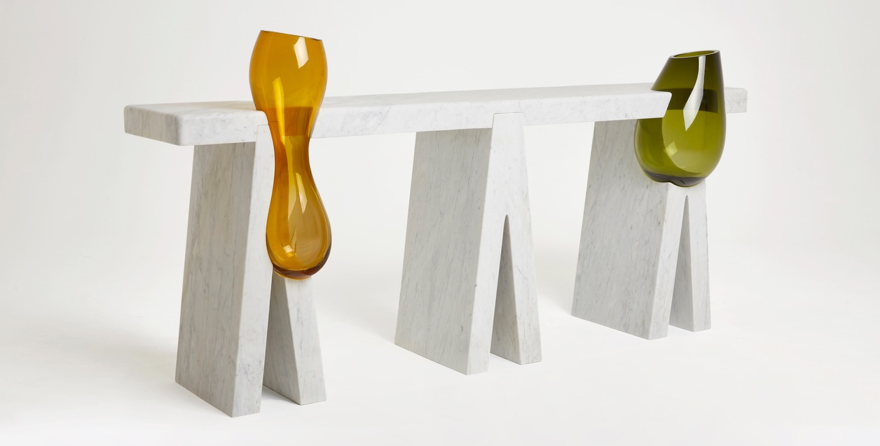 handblown glass from Murano with white marble from Carrara. | |