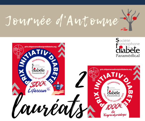 Pour rappel : Prix Initiativ'Diabète / LifeScan : 3 700 € Prix Coup de Cœur Initiativ'Diabète : 1 000 € ou une prise en charge pour 2 personnes pour le Congrès Annuel de la SFD à Toulouse en mars 2024