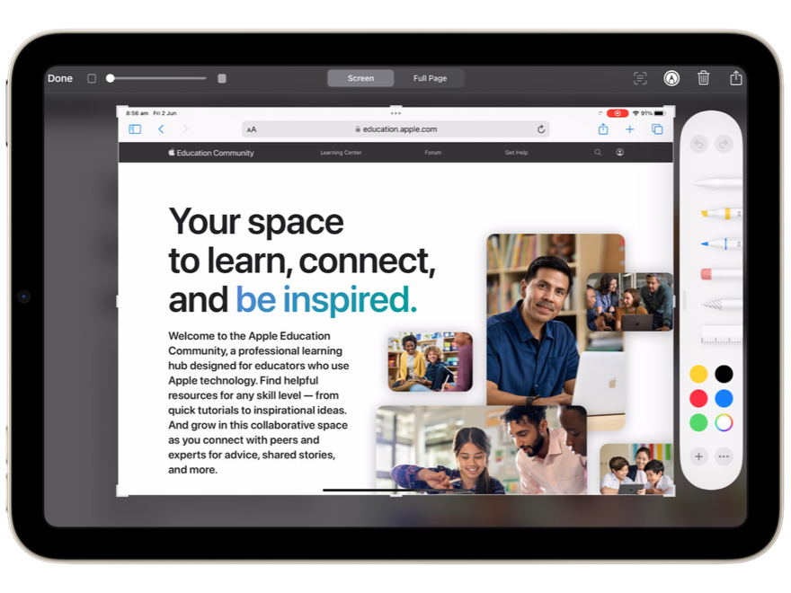 Swipe your finger up from the bottom left hand corner of the iPad screen to take a Screenshot. Perfect for students with big chunky cases, or those who struggle with the fine motor skills needed to multiple buttons at the same time. Your Markup tools will also immediately appear ready for annotation. If this does not work, check your settings in accessibility/gestures to make sure it is turned on. Tap here to see this in action. | | | |
