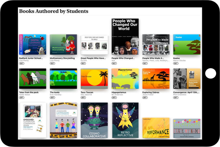 | | | In the Education section of Apple Books is a curated collection of ‘Books Authored by Students’. These books are written, illustrated and published by students. To explore these amazing student creations open Apple Books - Book Store - select the Education section - then Books Authored by Students. | |