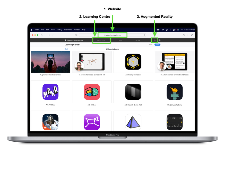 | | | | Tip - Apple Education CommunityDid you know you can visit the Learning Centre at www.education.apple.com to access more great AR resources and lesson ideas. Simply search for Augmented Reality using the magnifying glass at the top of the page. | | | |
