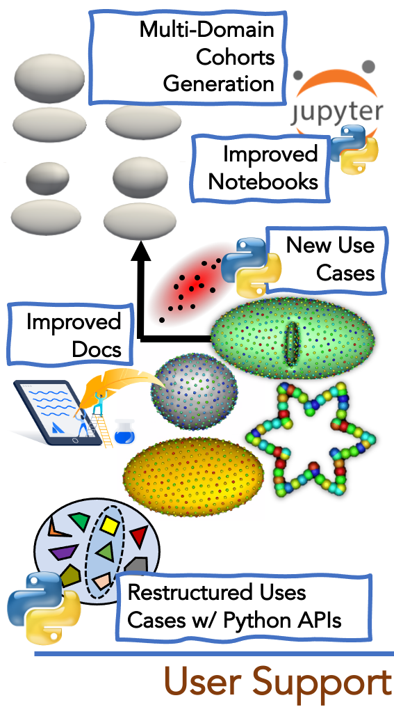 | | | New Use Cases, Improved Notebooks & More ...Multi-domain shape cohort generation: Ellipsoid joint generation is added to ShapeWorks' cohort generator python module to showcase and troubleshoot multiple domain shape modeling workflows. New use cases: New use cases are added to demonstrate PCA tools, geodesic distance-based particle-to-particle interactions, modeling contours, and multiple domains SSM. See Examples/Python