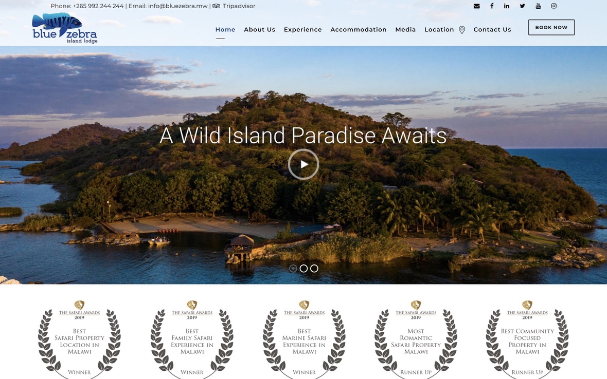 | | Blue Zebra Island Lodge, a luxury private escape within Lake Malawi National Park residing on Nankoma Island, have launched a brand new website. The enhanced site means you can now learn more about The Blue Zebra Experience and their exquisite setting in the world’s first freshwater national park: Nankoma Island, Lake Malawi National Park (UNESCO World Heritage Site). Read More